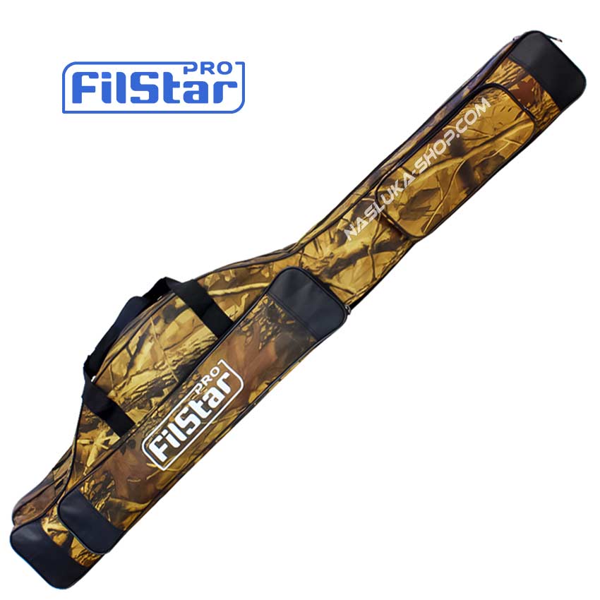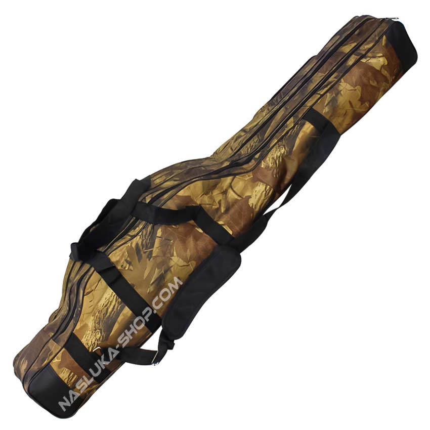 Калъф за въдици с макари, изработен от непромокаем плат с камуфлажна шарка.