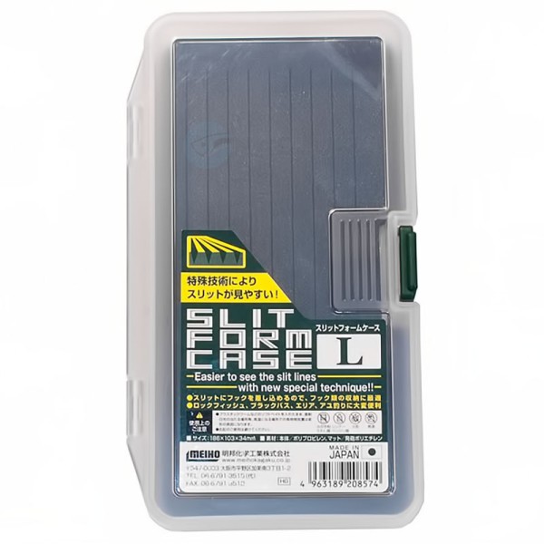 Meiho Slit Form Case, размер L, е специализирана кутия за съхранение и транспортиране на джигове, блесни, асист куки, тройки и други принадлежности, при която акцентът пада върху сигурността, организацията и удобния достъп.
