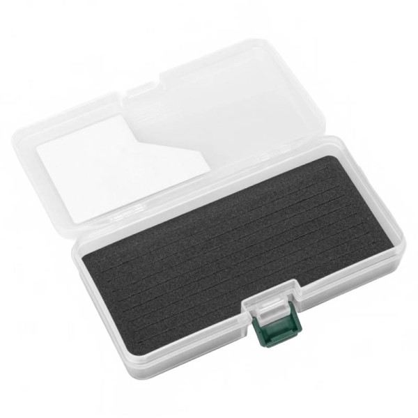 Основният елемент на кутията е висококачественото EVA табло с прорези, в което куките или джиговете се фиксират стабилно без опасност от разместване или нараняване. Каналите са прецизно изрязани, с подходяща дълбочина и гъстота.
