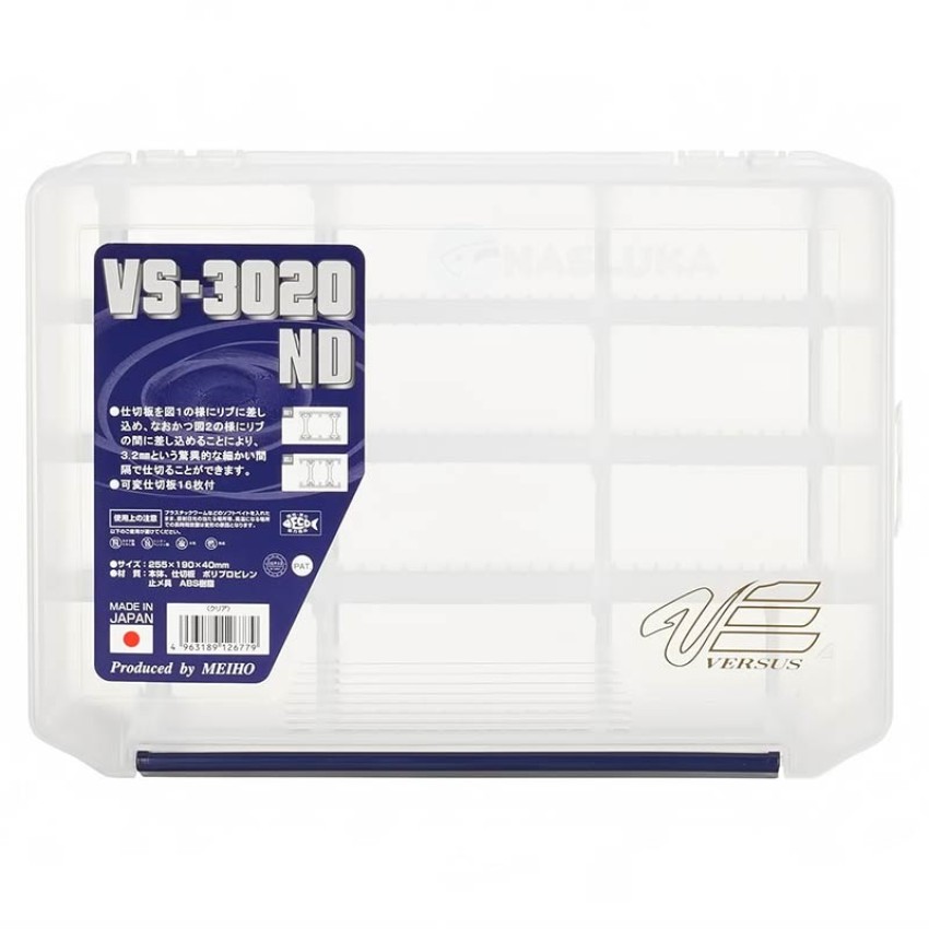 Създадена с прецизност, типична за японската марка Meiho, кутията VS-3020ND е универсален избор за риболовци, които търсят ефективен начин за организиране на изкуствени примамки, куки, тежести и други дребни принадлежности. Компактна, здрава и адаптивна - този модел предлага отлична комбинация между функционалност и дълготрайност.