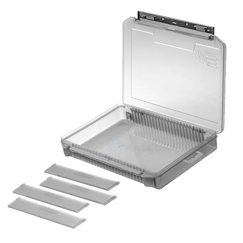 Кутията разполага с едно основно отделение, което може да се конфигурира според нуждите с помощта на 4 подвижни прегради (включени в комплекта). Това позволява съхранение както на дребни аксесоари - вирбели, куки, тежести, така и на по-дълги примамки като воблери, клатушки или пилкери.