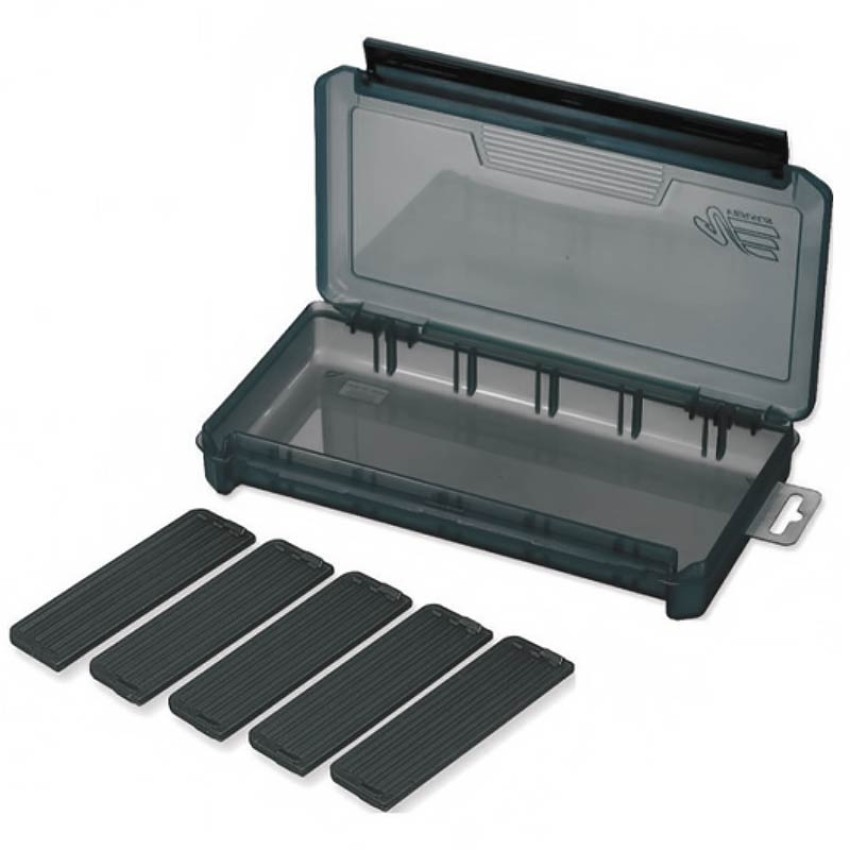 Кутията разполага с едно основно отделение, което може да се конфигурира според нуждите с помощта на 5 подвижни прегради (включени в комплекта). Това позволява съхранение както на дребни аксесоари – вирбели, куки, тежести, така и на по-дълги примамки като воблери, клатушки или пилкери.