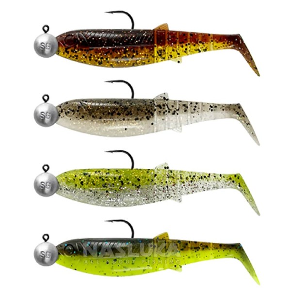 Комплект от 4 шада с джиг глави 9 г, SG Cannibal Shad Clearwater Mix 10 см