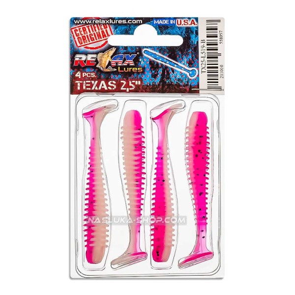 Важна специфика на силиконите Relax Texas е оребреното тяло, като пръстените създават допълнителна вибрация. Примамките са с предвиден офсет канал за лесно монтиране на куката