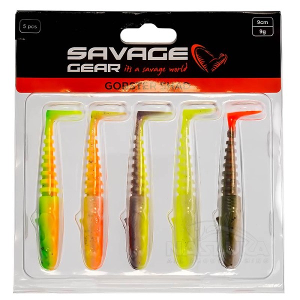 Комплект шадове на бранда Savage Gear. Gobster Shad е модел примамка с плосък профил, наподобяваща попче (Gobius).