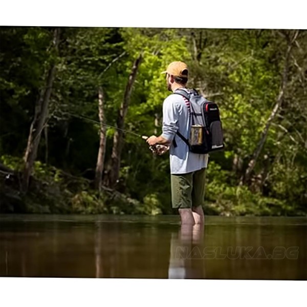 Раницата е изработена от здрави и подплатени материали, които осигуряват комфорт при носене. Тя има капацитет за съхранение на до 3 кутии за принадлежности, което ви позволява да носите всичко необходимо за вашия риболовен ден.