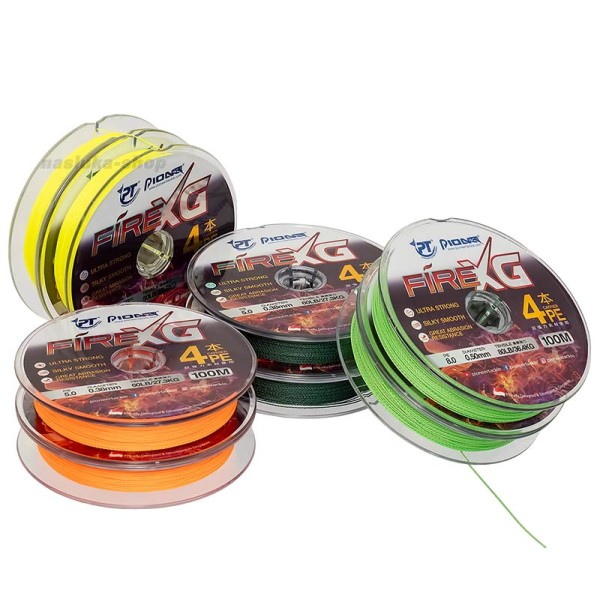 Плетеното влакно Pioneer Fire XG 4x е перфектният избор за риболовци, които изискват здравина и надеждност. Изработено от висококачествени материали, това 4-нишково влакно осигурява оптимален баланс между издръжливост и чувствителност, като гарантира стабилност при улов на морски и сладководни хищни видове.