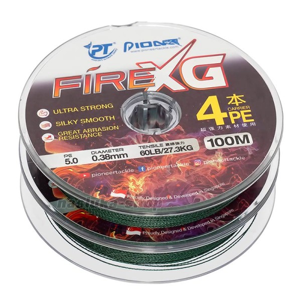 Със своята гладка повърхност и ниско триене, Fire XG 4x осигурява по-далечни и точни замятания, докато изключителната устойчивост на износване го прави подходящо за използване в различни условия, включително при контакт с подводни препятствия.