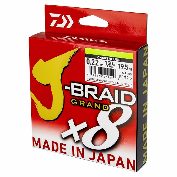 Плетеното влакно Daiwa J-Braid Grand X8 е усъвършенстваната версия на световноизвестния J-Braid X8. Този модел предлага значителни предимства при борбата с едри и силни риби.