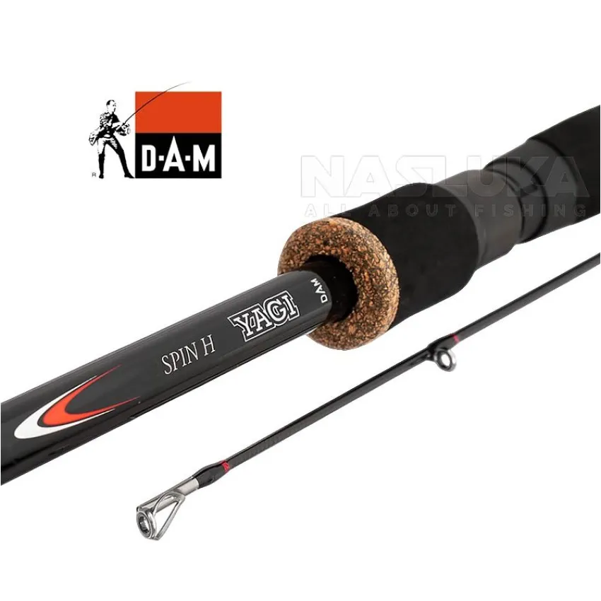 DAM Yagi Spin H е изработена от висококачествен IM8 карбон, което осигурява невероятна здравина и бърза реакция. Новите К-frame водачи намаляват теглото на въдицата, подобрявайки нейната ефективност и комфорт при дълги риболовни сесии. Дръжката е изработена от висококачествен EVA материал, който гарантира удобен захват дори при интензивен риболов.