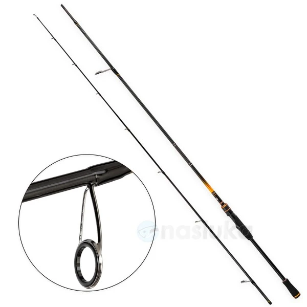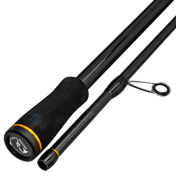 Изработена е със стегнат строй и прецизен баланс, който позволява дълги и точни замятания без усилие. Водачите са разположени така, че линията да се движи плавно и без съпротивление, а дръжката осигурява удобен и стабилен захват.🎣