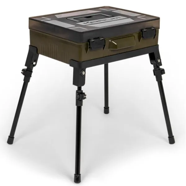 Благодарение на регулируемите разделители, можеш да организираш съдържанието според потребностите, а телескопичните крака позволяват удобна работа на всякакъв терен – до стол или под навес.