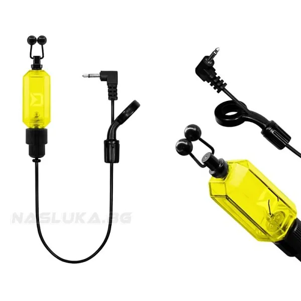 Индикаторът е с кабел с конектор за включване към сигнализатор. След като го включите, LED диодът ще светне с приглушена светлина, която позволява да видите индикацията за кълване през нощта.