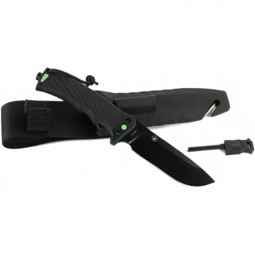Дръжката от ABS в черен цвят гарантира сигурен захват. Общата дължина на ножа е 243 мм, а острието е 113 мм с дебелина 5 мм - идеално съчетание между прецизност и здравина.