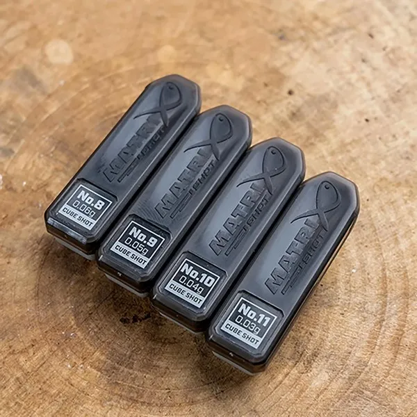 Matrix Cube Shot са прецизни оловни тежести с уникална цилиндрична форма за мач и риболов с болонезе. Формата им гарантира стабилно закрепване върху влакното и предотвратява нежелано плъзгане по време на риболов. 🎯