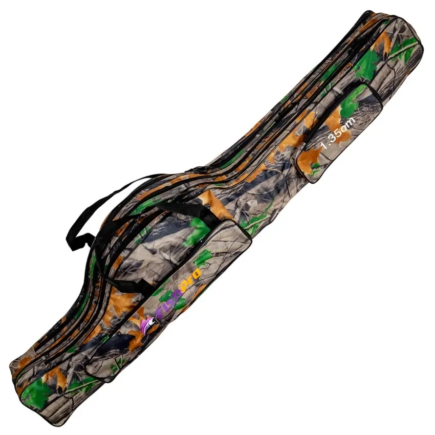 FishPro 3 Rod Sleeve Camo е троен калъф за максимална защита и удобство при пренасяне на въдиците с монтирани макари.🎣