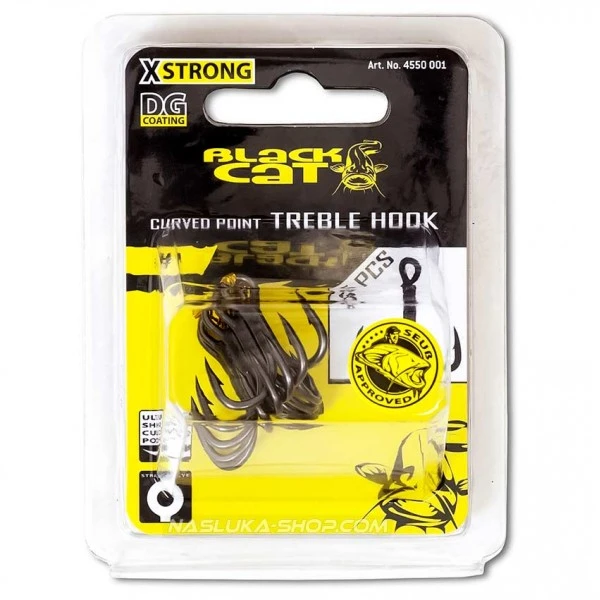 Висококачествени тройни куки Black Cat, отличаващи се с изключителна острота и здравина.