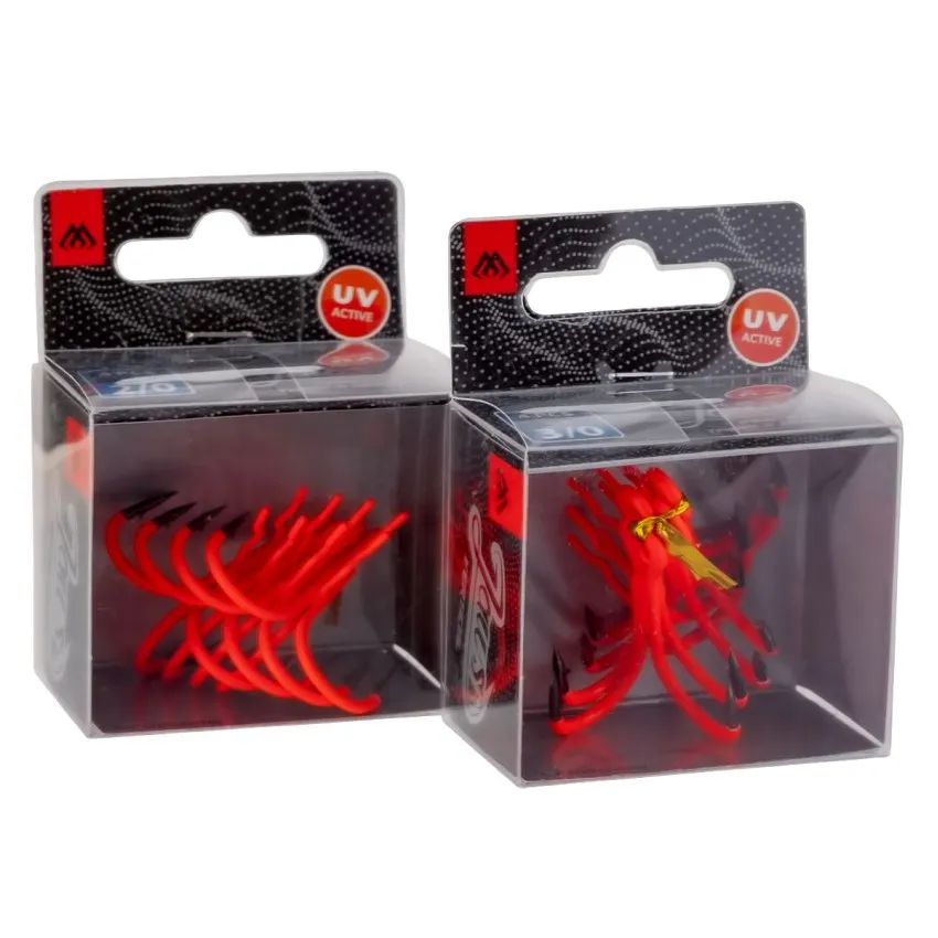 Тройните куки Mikado Jaws Vertical UV Orange са създадени за риболовци, които търсят сигурно закачане при работа с големи силиконови примамки. Изработени от висококачествена стомана с невероятно остри върхове, тези куки притежават ярко UV оранжево покритие, което увеличава видимостта в мътни води и при слаба светлина. 🎣