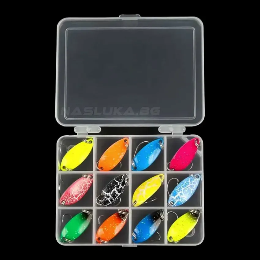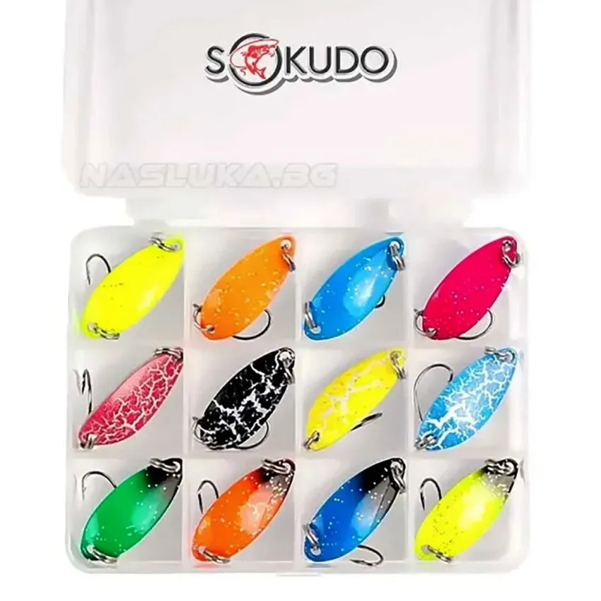 - Примамки: 12 бр. клатушки Sokudo Trout Color за костур, пъстърва и кефал
