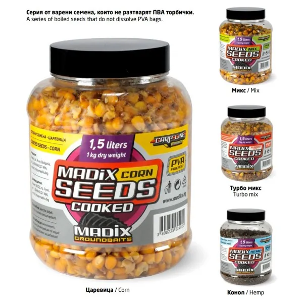 Варено конопено семе Madix Seeds Cooked е класически натурален атрактант, който никога не подвежда при риболов на мирна риба. Зърната са варени до съвършенство - готови да отделят естествени масла, които създават силно привличащ ароматен облак във водата. 🎣