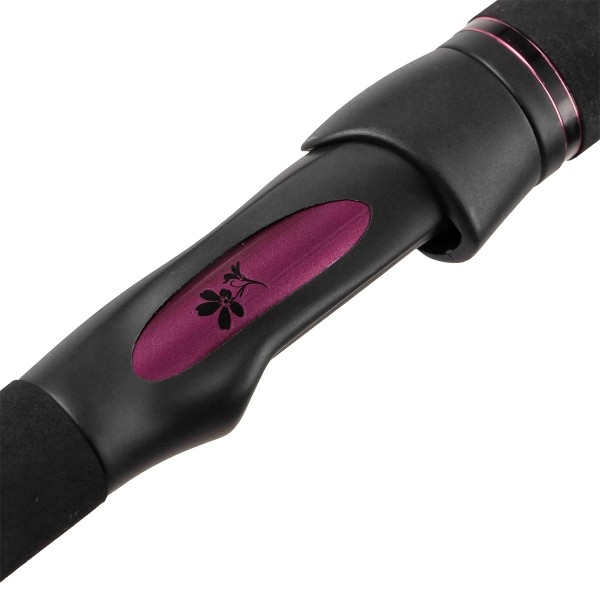 Завършена с фин розов акцент и стилизиран флорален дизайн, тази въдица добавя нотка женственост край водата.