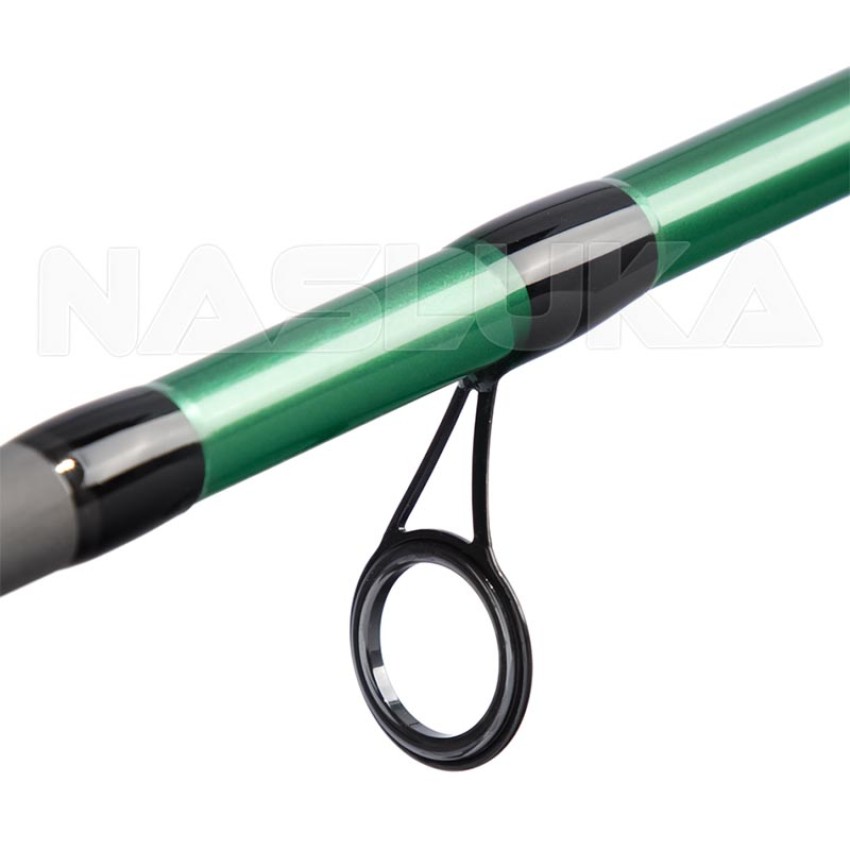 Фидер въдицата е в комплект с 3 върха (2 стъклопластови + един карбонов), чиято сензитивност позволява да регистрират успешно всяко кълване.