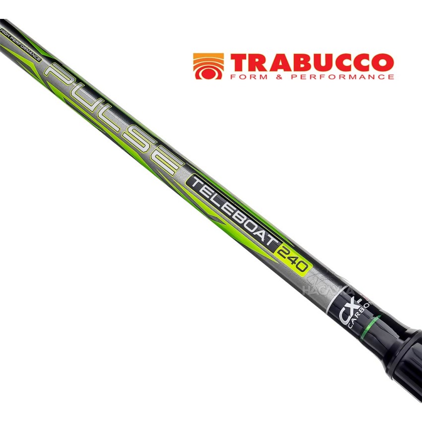 Trabucco Pulse Teleboat е оборудвана с надеждни и солидно закрепени антикорозионни SiC водачи. Трите най-големи водача са двукраки, поради което монтирането им към въдицата е по-надеждно. Върхът е в ярки контрастни цветове за по-добра видимост. Предназначена за замятане на тежести до 150 гр. Макарата се фиксира стабилно с помощта на удобен винтов макародържач. В долната час на дръжката е добавено противоплъзгащо покритие.