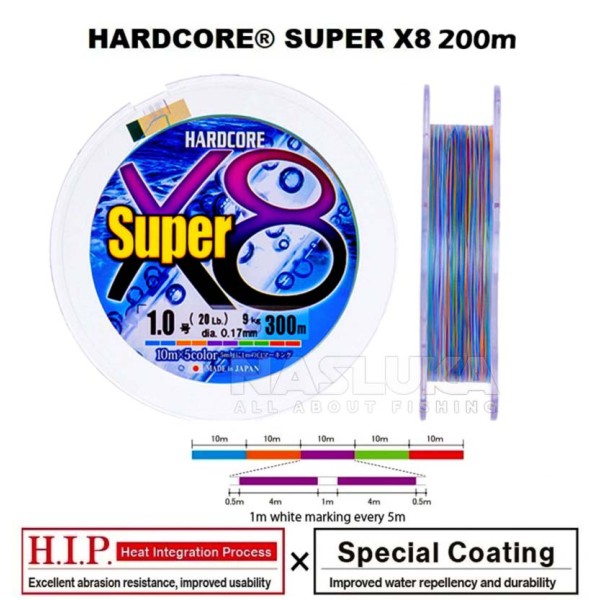 Специалното покритие на Super X8 осигурява изключителни водоотблъскващи свойства, които минимизират водопоглъщането и намаляват триенето при преминаване през водачите. Това води до по-дълги и точни замятания, както и по-лесно и гладко навиване.