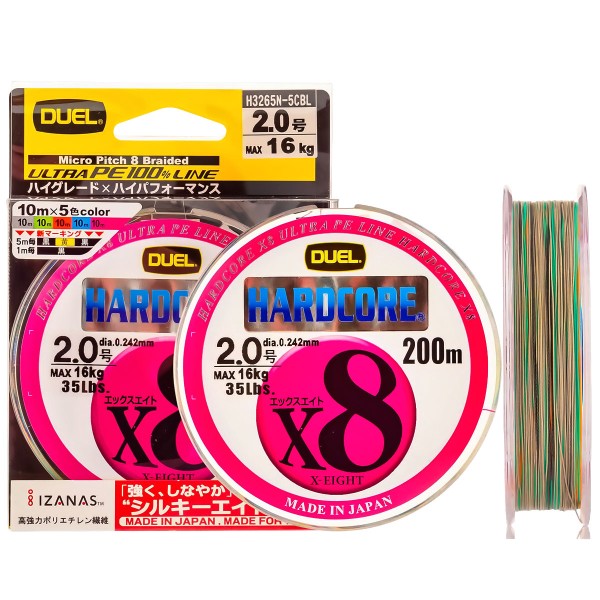 Duel Hardcore x8 е подходящ за спининг и тролинг, сладководен джиг и дълбоководен морски риболов. Отличен избор за кастинг с изкуствени примамки и бомбарди.