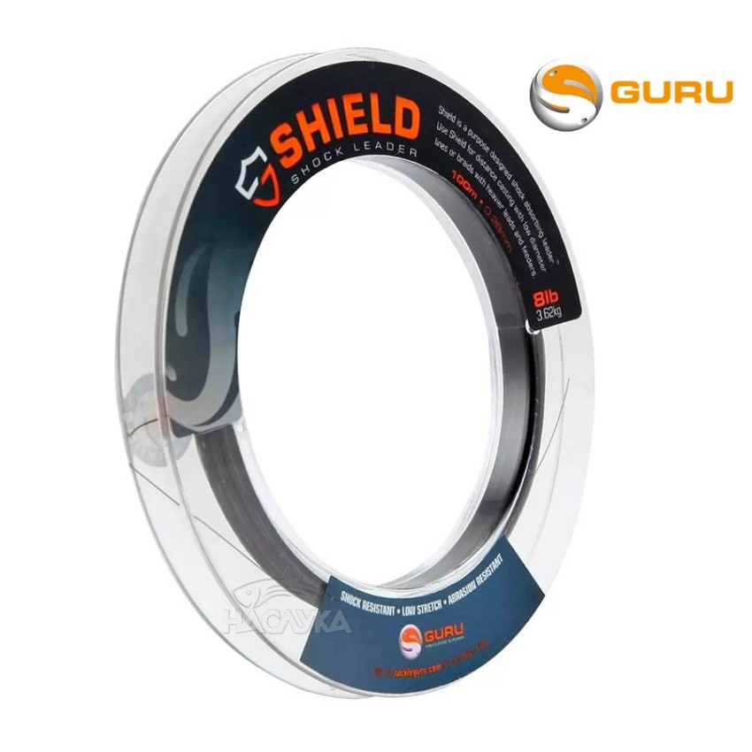 Guru Shield Shockleader е монофилно влакно с голяма здравина, подходящо за големи натоварвания. Влакното е издръжливо на протриване и е идеално за направата на шоклидери в края на риболовната линията.