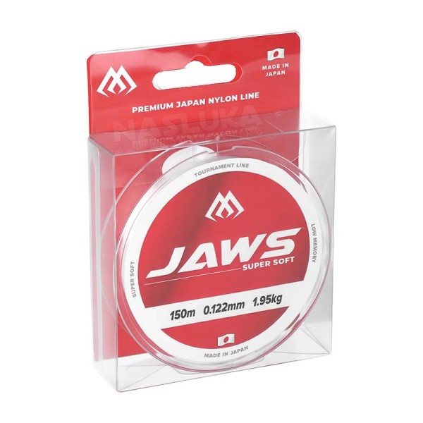 Mikado Jaws Super Soft е висококачествено монофилно влакно, произведено в Япония. Отличава се със своята кристална структура, която абсорбира светлинните лъчи и го прави невидимо във водата. Има външен защитен слой от флуоровъглерод, което го прави изключително устойчиво и надеждно.