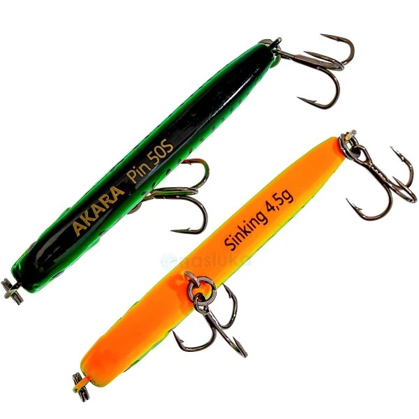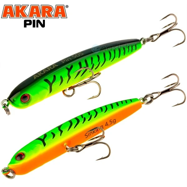 Воблер Akara Pin 50S 50 мм, 4.5 г - цвят A68 е потъваща примамка, разработена за целенасочен риболов на костур. Силата му е в паузата - плавно пропадане с леко поклащане, което изглежда като безсилна рибка. 🐟