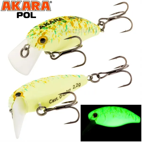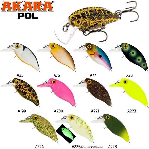 Воблер Akara Pol 35F 35 мм, 2.2 г - цвят A225 е миниатюрен плаващ воблер, проектиран за риболов на кефал, костур и пъстърва в плитки и спокойни води.