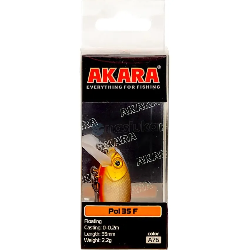 Воблер Akara Pol 35F 35 мм, 2.2 г - цвят A76 е плаваща примамка, създадена за риболов на кефал, костур и пъстърва в плитки и чисти води.