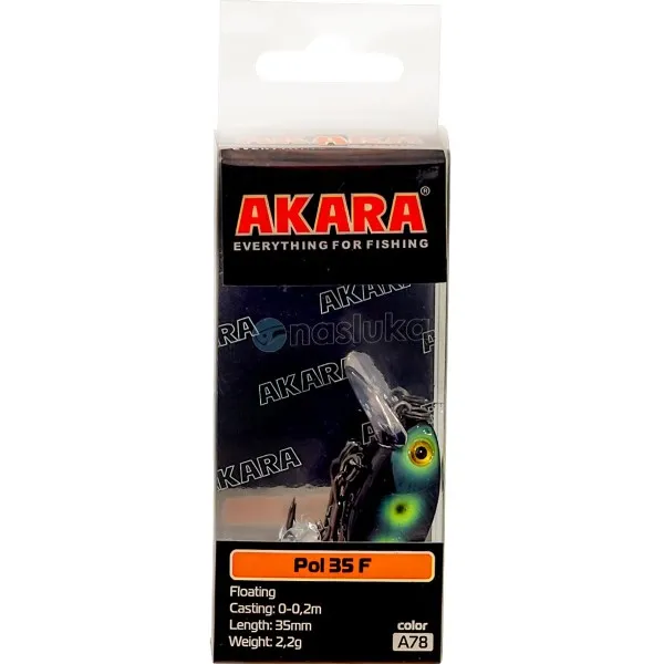 Воблер Akara Pol 35F 35 мм, 2.2 г - цвят A78 е изключително чувствителна плаваща примамка за кефал, костур и пъстърва, подходяща за плитки реки и поточета.