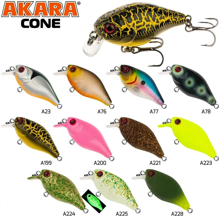 Воблер Akara Cone 35F 35 мм, 4 г - цвят A199 е класически кранк, създаден за риболов на кефал и пъстърва в плитки и средно дълбоки води.