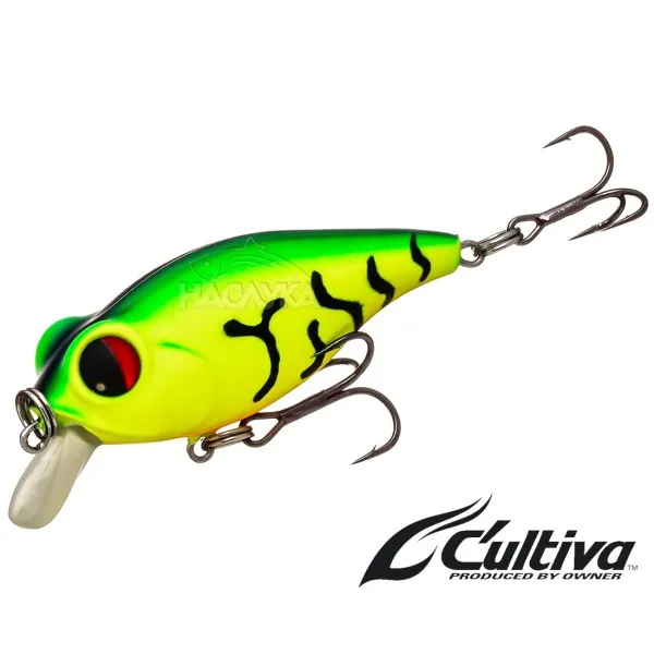 Owner Cultiva Bug Eye Bait е плиткогазещ кранк за облавяне на повърхностните слоеве на дълбочина до 0.5 метра. Воблерът е плуващ и притежава характерна игра с бързи агресивни движения и странични колебания. Подобно на всички воблери Owner - Cultiva, той е оборудван с големи 3D очи, които са като живи и са много привлекателни за рибите.