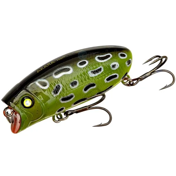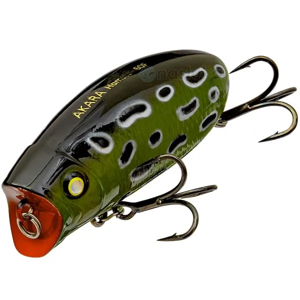 Воблер-Попер Akara Hamster 60F 60 мм, 10 г - цвят A36 е плаваща примамка за активен риболов на щука и костур в плитки и затревени води.