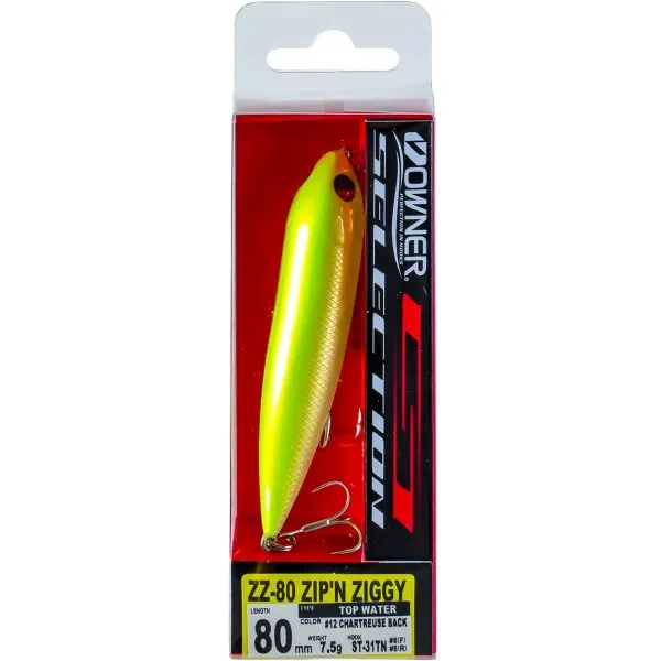 Owner Zip N Ziggy 80mm е класически повърхностен воблер тип уолкър, създаден за динамична техника walk the dog. 🎣 Имитира паникьосана дребна рибка и провокира агресивни атаки от хищниците.