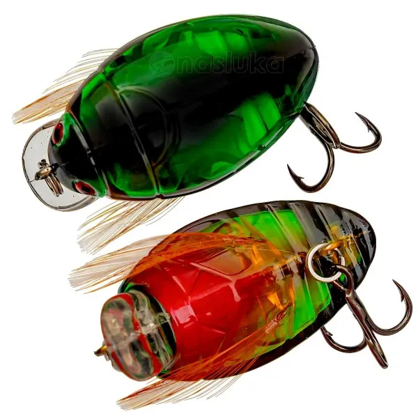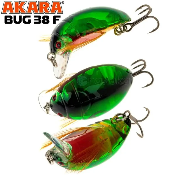 Воблер Akara Bug 38F 38 мм, 4 г - цвят 06 е отличен избор за риболов в слънчево време и плитки участъци. Ярката окраска прави примамката видима и при силно осветление, а равномерното движение по повърхността напомня на лятна мушица.