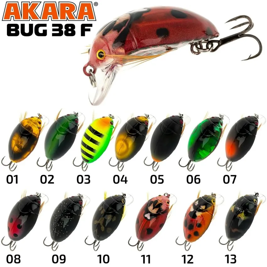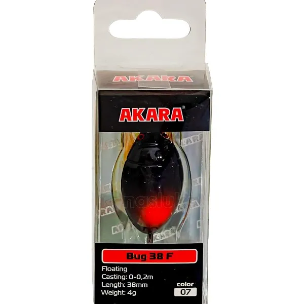 Воблер Akara Bug 38F 38 мм, 4 г - цвят 07 е ефективен при мрачно време и лека вълна. Тъмната му окраска контрастира отлично на сивото небе и предизвиква инстинкта на хищника.