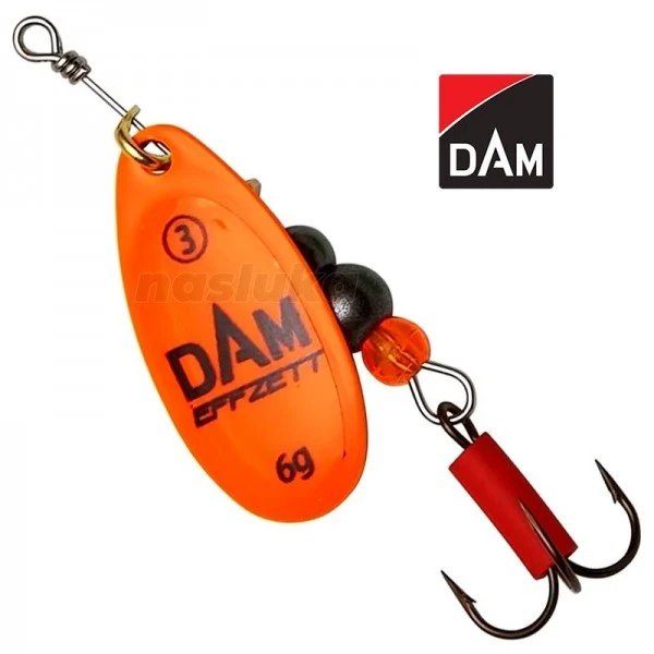 Листото на DAM Fluo Spinner е с относително обтекаема форма, което позволява да се използва при спининг риболов както в стоящи води, така и в реки.