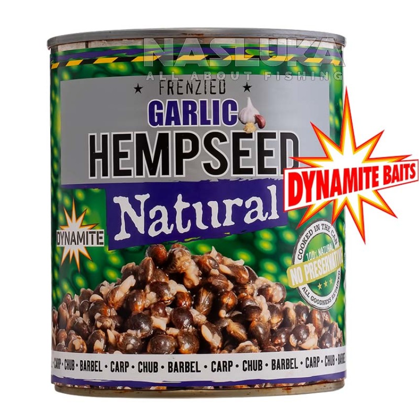 Dynamite Baits Frenzied Garlic Hempseed Natural е висококачествен консервиран коноп, отличаващ се с големи зърна и интензивен аромат на чесън.