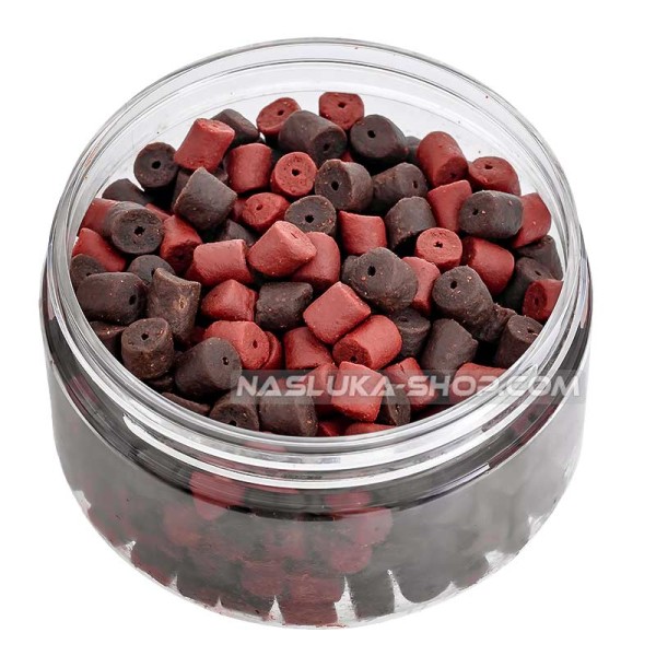 Уникални разпробити пелети Dynamite Baits Hook Pellets Pre-Drilled, които притежават високо качество и невероятна ефективност. Пелетите са с диаметър 8 мм, което позволява използването им както за фидер риболов, така и при лек шаранджийски риболов. Във всяка опаковка са миксирани два цвята - червени и черни пелети. Отличават се с високо съдържание на протеини и мазнини, което, заедно с оптималния подбор на предлаганите аромати, е в основата на тяхната атрактивност. Пелетите са разпробити, като по този начин лесно и бързо могат да се използват за различни типове монтажи - на косъм или с помощта на силиконов ринг.