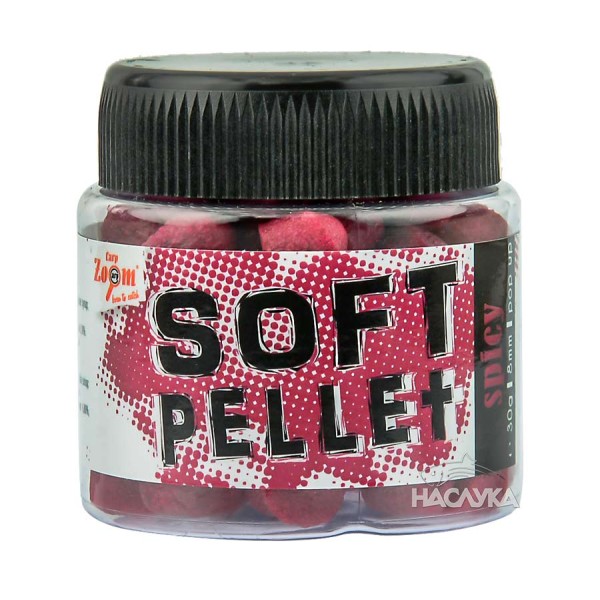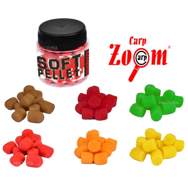 Меки плуващи пелети, подходящи за директен монтаж на куката. Произведени от висококачествени суровини, бои и аромати с първокласно качество. Освен на куката, Carp Zoom Soft Pellet могат да се монтират с винтчета или шишчета за стръв, както и на традиционния монтаж косъм. Предназначени за фидер и метод фидер риболов. Предлагат се в много изгодни, икономични 30 грама бурканчета с различни вкусове, аромати и цветове.