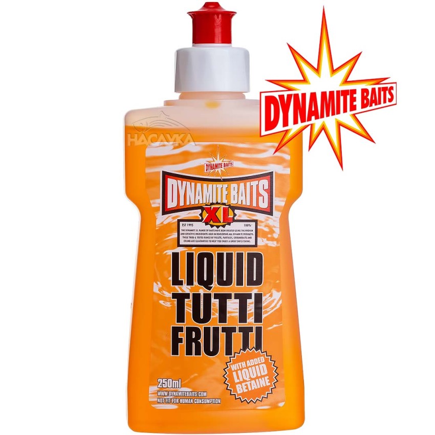 Dynamite Baits Liquid - Tutti Frutti се предлага в удобна 250 ml бутилка за лесно използване.
