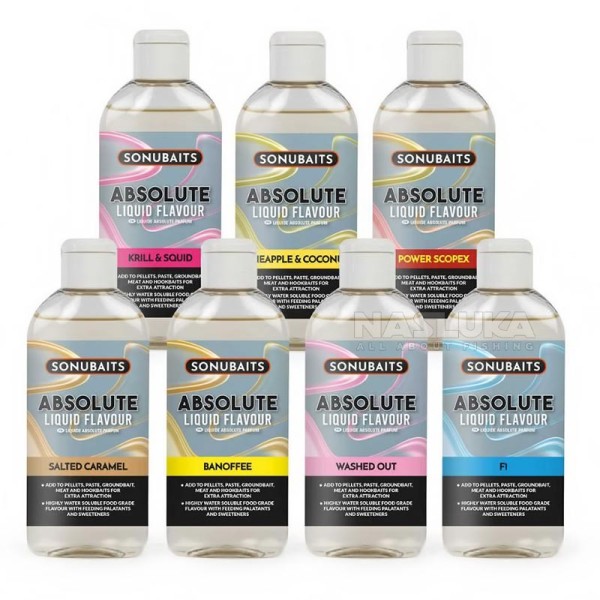 Sonubaits Absolute Liquid Flavour е висококачествен течен атрактор, предназначен за риболов. Той е разработен специално за привличане на различни видове мирна риба чрез създаване на силна и трайна ароматна следа във водата.