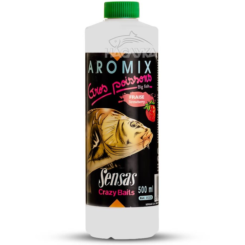 Sensas Aromix Strawberry е високо ефективна добавка за риболов на всички шаранови риби в реки и езера. Характеризира се със силен плодов аромат на ягода - доказано ефективен за привличане на големи риби през всички сезони. Добавката под формата на концентрирана течност и може да се добави към водата за смесване на захранката между 10 до 25%. Подходяща за ароматизиране на различни семена и миксове, пелети, ароматни теста и др.