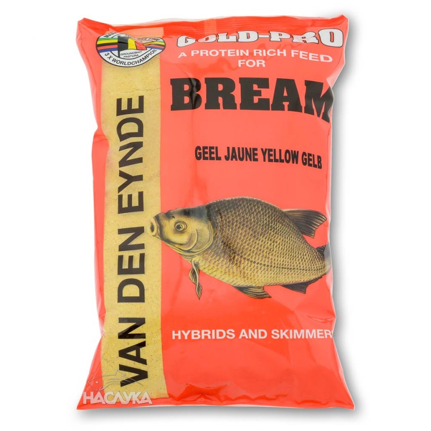 Gold Pro Bream е еднa от най-ароматните захранки за риболов от серията Van den Eynde със сладък карамелен аромат, който напомня на добавката Brasem. Специално разработена за риболов на платика, тази легендарна захранка вече 30 години печели световни и европейски първенства и е задължителна за много състезатели и любители риболовци. Gold Pro Bream е силно подсладена, ароматна и пухкава, като може да се използва в реки, канали и стоящи води. Доказано привлича от голямо разстояние платика и морунаж, като ги задържа на захраненото място дълго време. Освен за оформяне на топки при риболов на плувка, захранката е много подходяща и за фидер риболов, като образува пухкава смес, която се придържа към фидер хранилката и избухва на дъното. Може да се ползва като самостоятелна смес или в комбинация с други захранки. Препоръчително е към нея да се прибави от стръвта с която ще се лови.